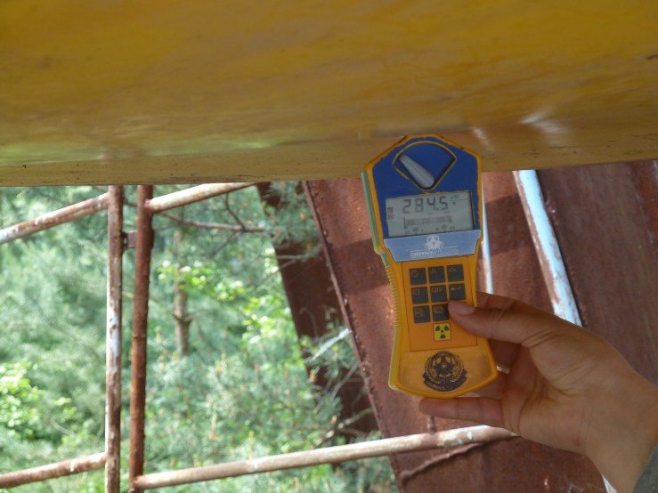 We got another radiation warning as our guide held the Geiger counter next to a Ferris wheel carriage and the numbers started to spin up and the counter started to shriek. The radiation was highly localised – move the counter 20cm away and the shrieking stops and the numbers start to fall.