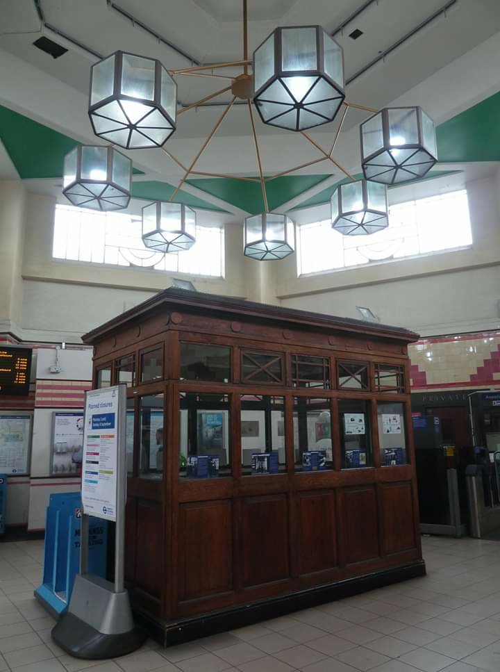 Hounslow West was a pleasingly box-shaped station, and still had its original ticket office in the station concourse, along with some angular lights that harken back to the 1920s. (At least in my eyes.)