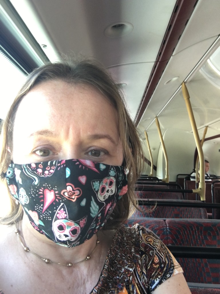 On Saturday we had another team get together. I expected it to be easy to get there – catch my commuting train from The Before – but my train line was suspended for engineering works. No problem, I’ll catch the 48 bus. Except, as the woman at the bus station information said to me, “48 bus stopped a long time ago.” There is no 48 bus anymore. Instead I caught the 55 which seemed to follow a similar route (i.e. slow and circuitous down streets choked with traffic). I forgot that I would be wearing a mask for over an hour on the bus on a warm summer’s day. I did not realise what the would be like. It’s like a little mini steam facial for your lower face.