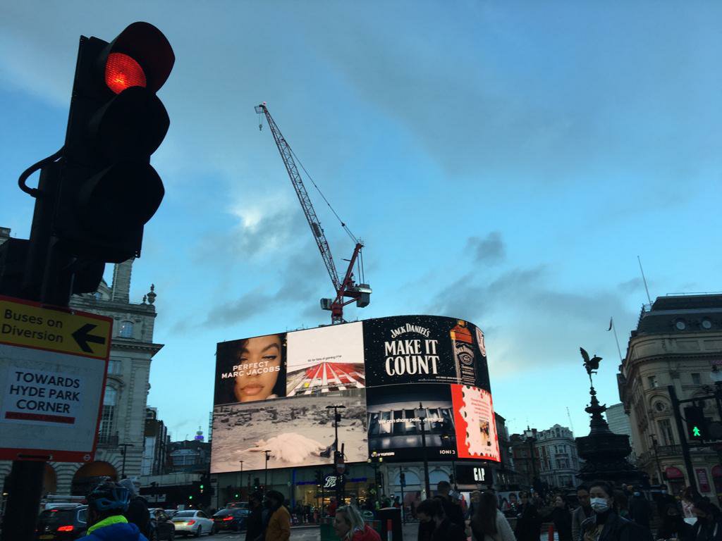 - The shock of uncrowded spaces – Piccadilly Circus without the throngs of tourists; Christmas lights in side streets twinkling for no-one; enticing Christmas displays in the windows of closed shops.