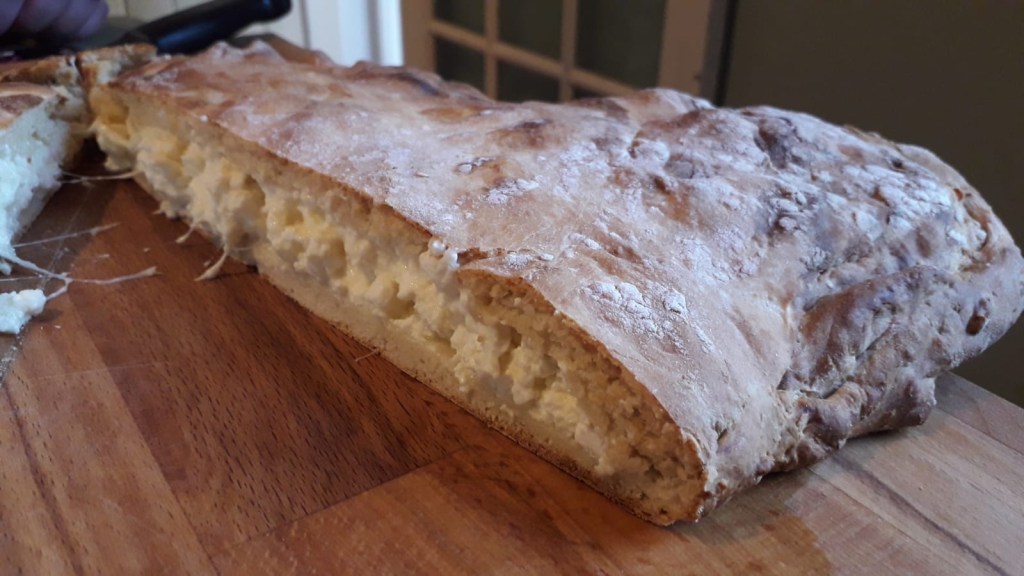 We used Nigella’s recipe for khachapuri, but again, local conditions meant we had to sub cottage cheese for the ricotta cheese specified in the recipe. And we made it half measure. But it looked absolutely beautiful and was delicious!