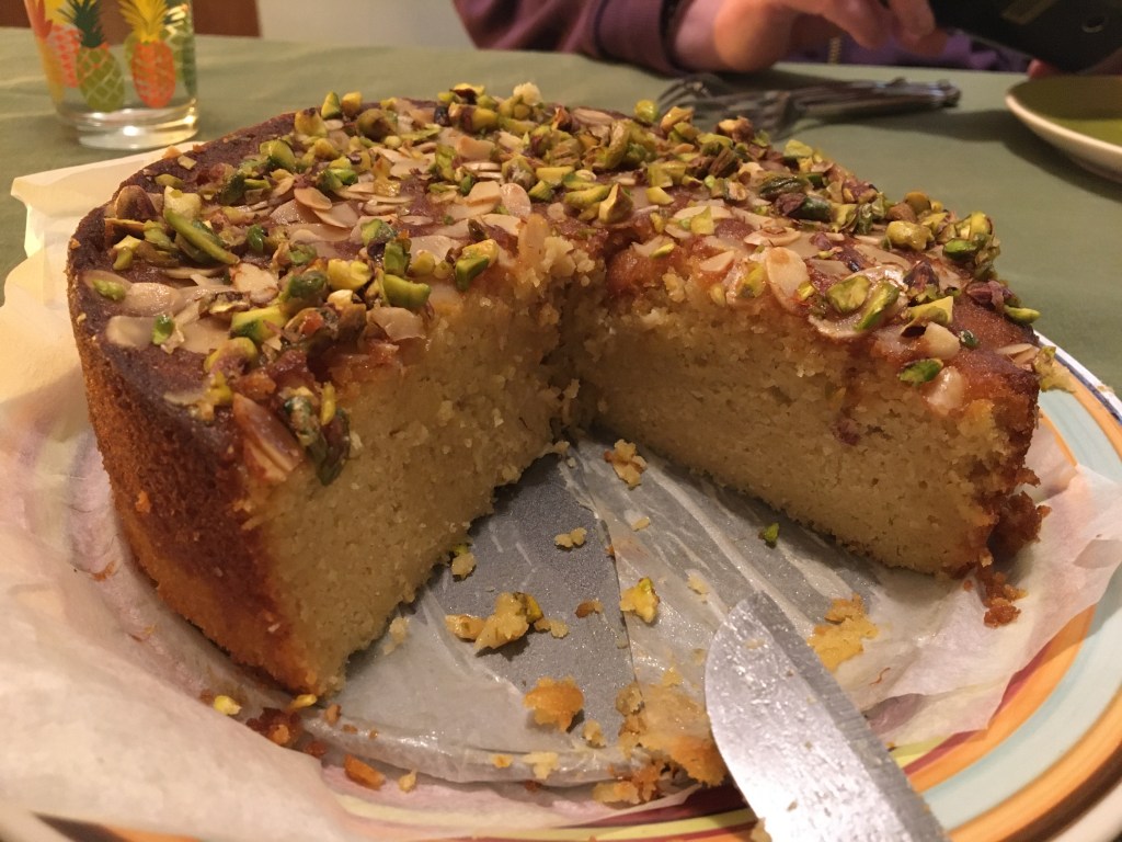 Persian love cake was an obvious choice for dessert because we (I) didn’t like the look of the honey cake that kept coming up on Georgian recipe sites. Love cake is a heavy cake made with yoghurt, rose water, almond meal, semolina (we used polenta/corn meal). And 5 eggs!