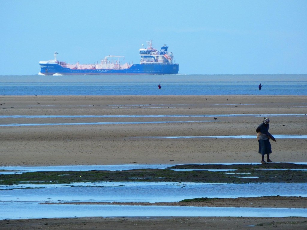 We had a few days in Maputo, and coming from South Africa, where the security guard wouldn’t let us leave our hotel on foot at night, it felt safe. It’s a developing city in a developing country and there is a mix of wealthy and not so wealthy areas, but they seem to coexist side by side relatively peacefully. The city has a wide beach that is thick with grilled chicken stands on weekends. You can also see the importance of trade for this mineral rich country, as Maputo has a new port, and large ships like this one are frequently seen on the horizon, coming and going.