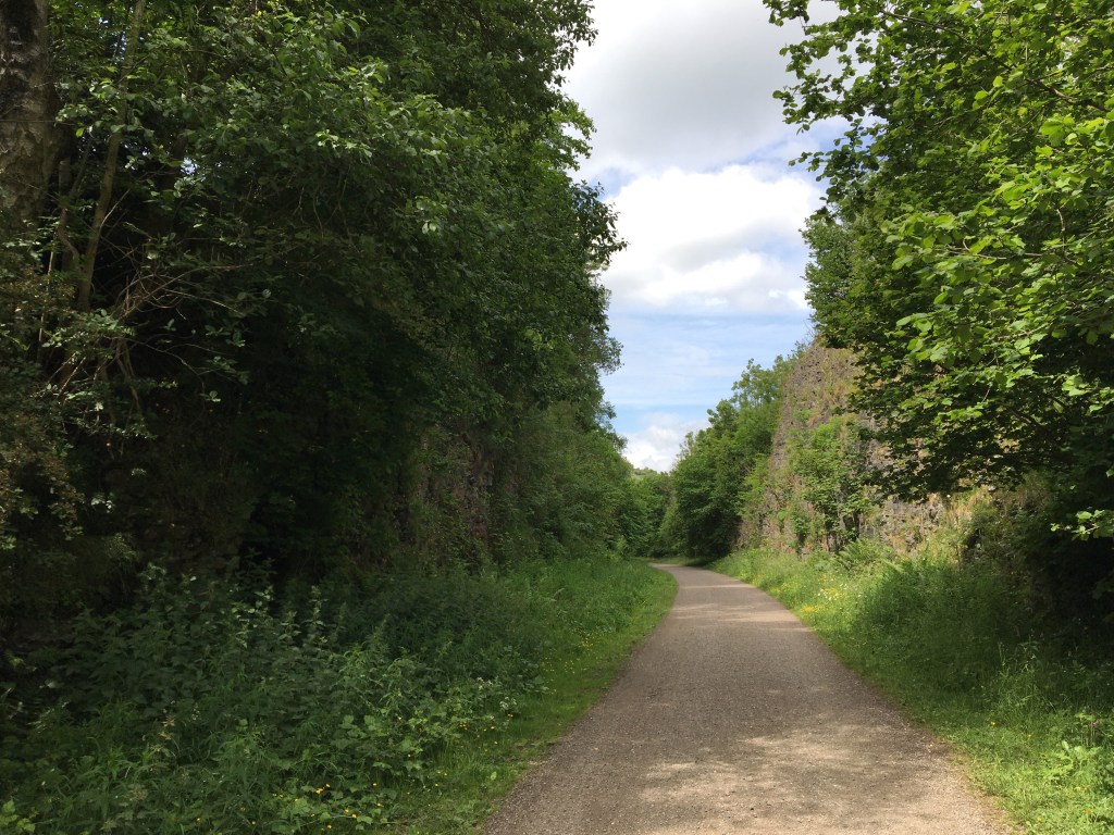 Monday: Having given my blistered foot a few days of rest with some gentle walking, and with the pain in my foot now all gone, it was time to put it to the test with some serious walking. We headed off to walk the Monsal Trail, getting off a bus at the side of a field and following a small trail down the hill and then up the other side to join the trail. The Monsal Trail is a long but easy walk following the path of a former railway line. It’s popular with hikers and bikers and it was what lured us to Bakewell in the first place, for the opportunity to walk across the viaduct and through the tunnels.