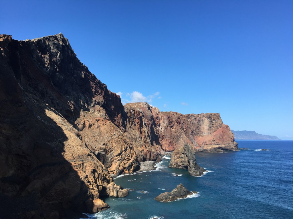 Hike 2: Ponta da Sao Lourenco. Two days after Pico Ruivo, and we set out for another walk. In between times we had a day of rest, where I went swimming and got sunburnt. We also were suffering severe muscle pain in our legs from the strain of that first walk – pain that meant we could not walk up or down stairs without grunting – and the apartment we’re staying in is on the 2nd floor, so stairs are a daily feature of our lives.