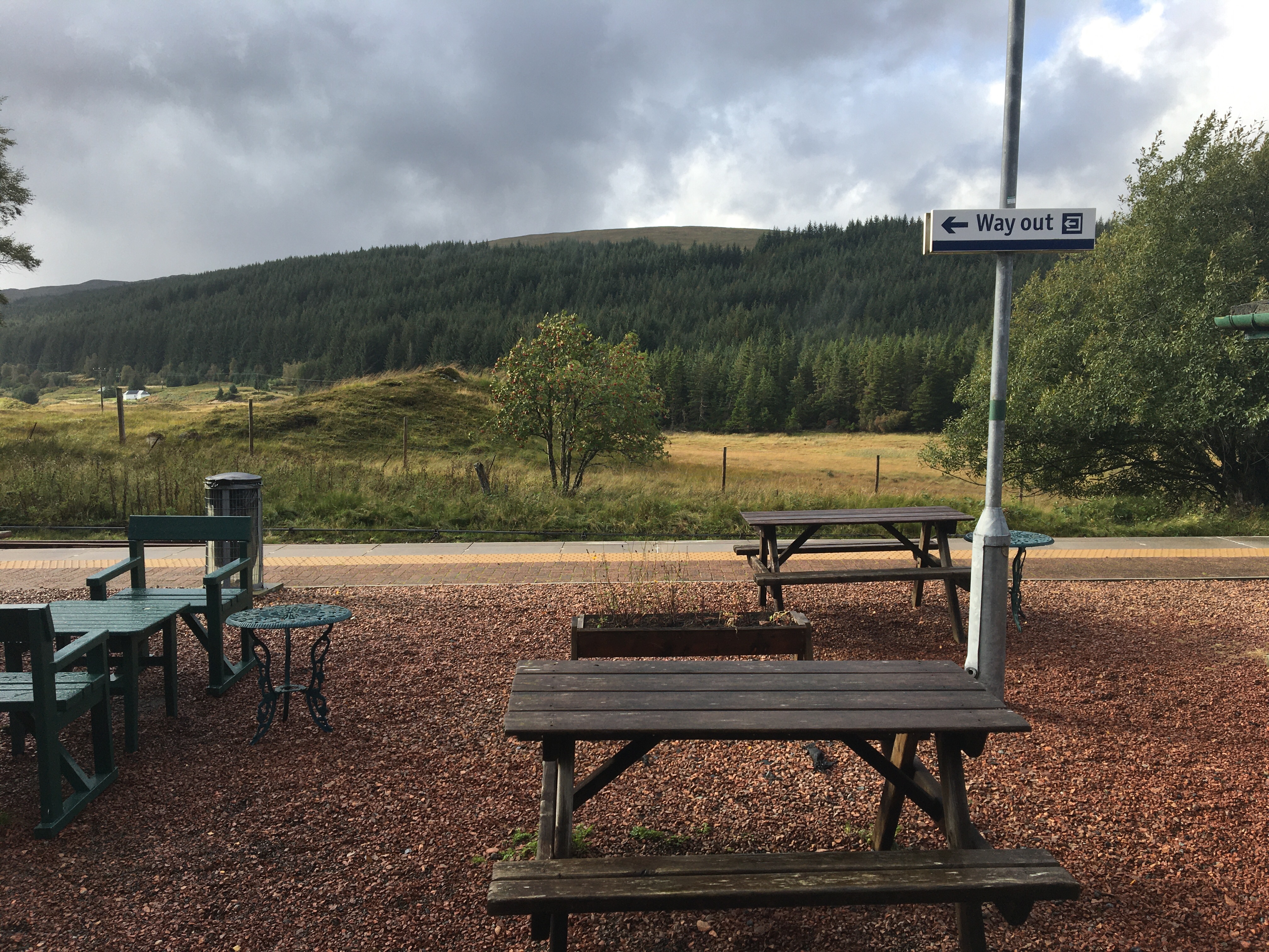 We saw a rainbow as we were leaving Arrochar; had a chance to stretch our legs in Ardlui while we waited for a late running train coming in the opposite direction; and then the rain came down as we approached Crianlarich and entered Rannoch Moor. Yes it was all still beautiful and wild but in my mind, I’d planned doing this trip alone, so although I enjoyed the genial company of my colleagues, it wasn’t quite the trip I’d planned.
