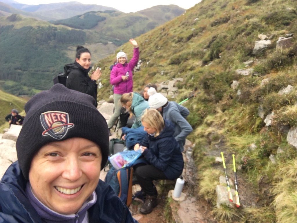 Saturday dawned bright-ish, which is the best you can hope for in the Scottish highlands in October. I had my gear ready – long sleeved wool shirt, fleecy leggings I bought to do winter bootcamp in the park some years ago, wool socks, my sturdy Berghaus hiking boots, a fleece and a fleecy headband to keep my ears warm. Others were wearing more layers and asked if I wasn’t cold? I replied I would warm up once we started walking. In fact our guide, the wonderfully chirpy James, stopped us after 20 minutes so people could peel off an extra layer that they no longer needed after warming up in 20 minutes of ascent.