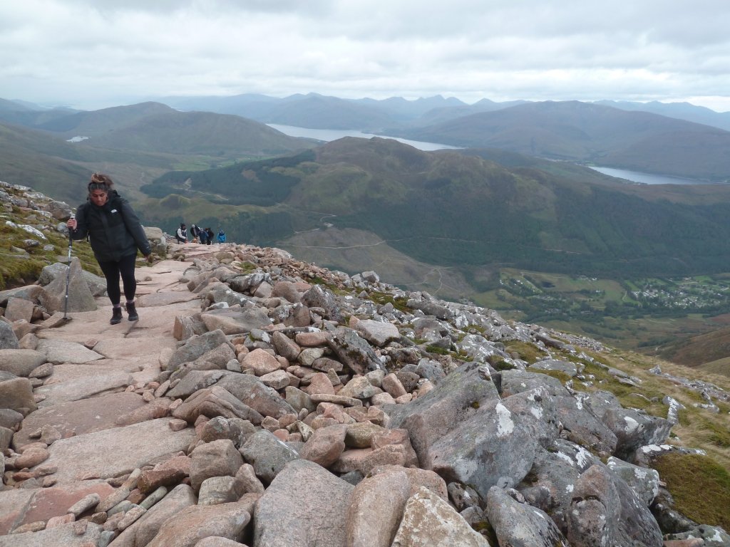 One thing no-one told me about Ben Nevis is that when you get to the top, exhausted, you then have to walk up some steps to a tiny platform to put your hand on the trig point to say you’ve really done it. To me it felt unkind at this point to ask me to walk up more steps, to stand on a narrow platform and be even more buffeted by the wind just for the sake of a photo but I did it.