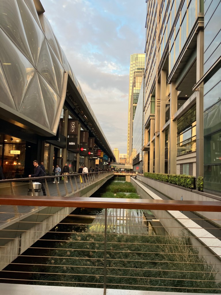 I walked. I walked and walked. I saw a cafe that looked familiar – did I see that last time? I think I’ve been here before. I catch a glimpse of the river and head for that. I know my building is close beside the river. I just hope this isn’t the river on the other side of the Canary Wharf U shape.