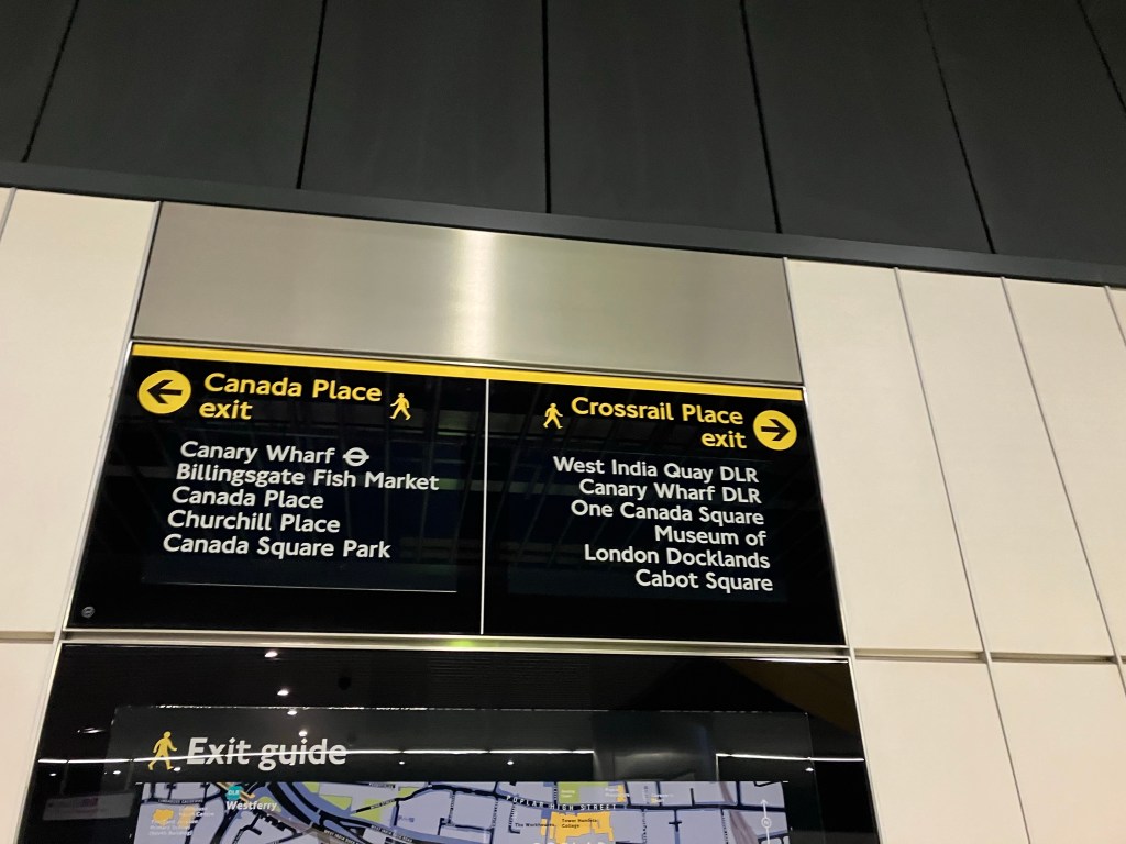 I worked out that my mistake was getting on the Elizabeth line where I arrive on the platform – at the front of the train. To get to where I need to be at Canary Wharf, I need the exit at the back of the train.