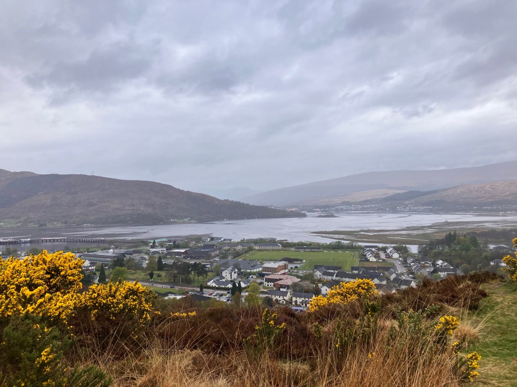 That said, the lower / easier path still had a short (and steep, of course) uphill climb, but this brought us up above Fort William with views across Loch Linnhe, a marvellous view despite the dreich weather. The Cow Hill path led us through scrub, and then along paths lined with fragrant gorse. I breathed in deeply, grabbing as much of that fresh fragrant air as I could, while I could.