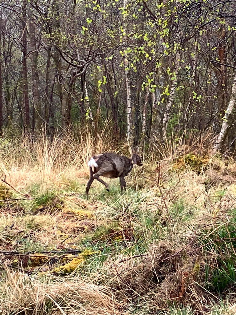 We were up high enough to not feel how close we were to the town of Fort William and we were close enough to the forest to come across a grazing roe deer.