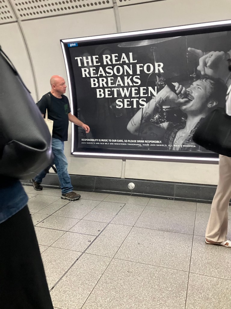 This poster for Jack Daniels annoys me. I think of the number of people in the music business that suffer with alcohol related issues. It’s seen as part of the rock’n’roll lifestyle but it can be a bigger problem.